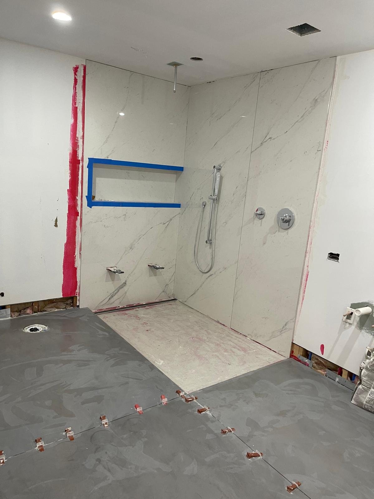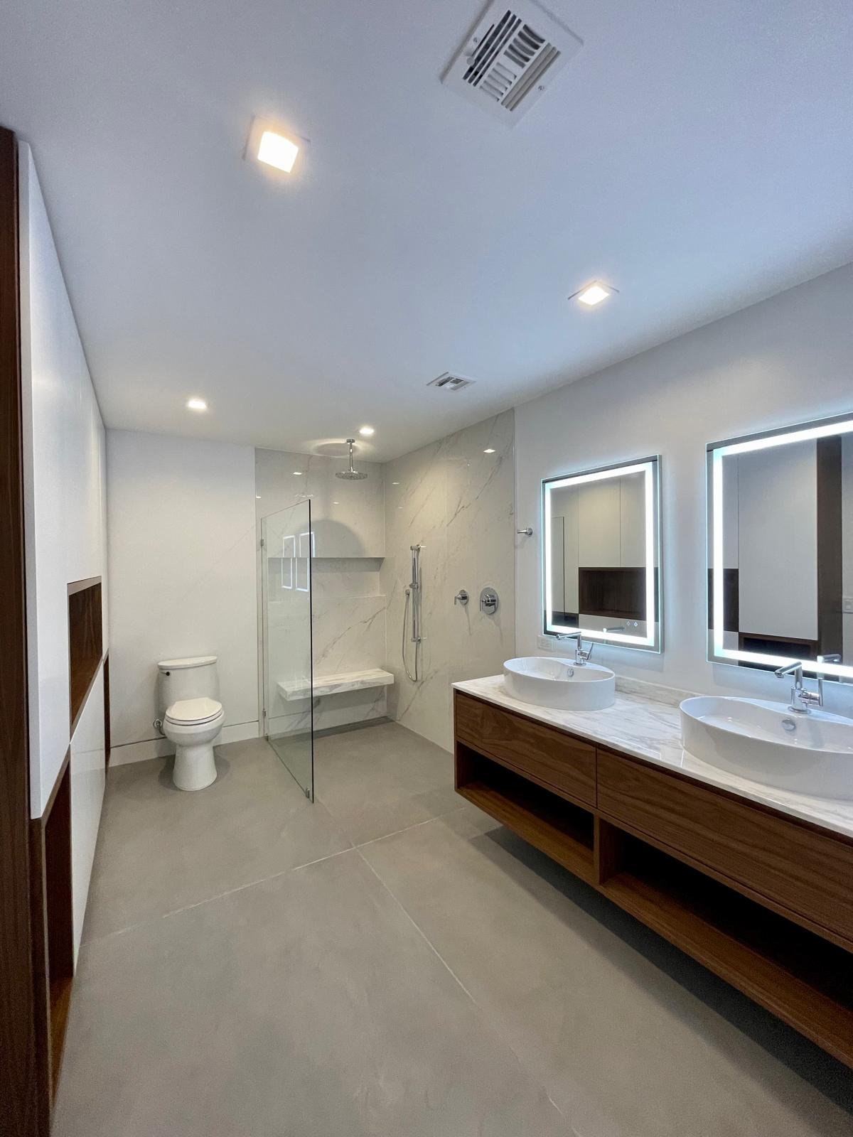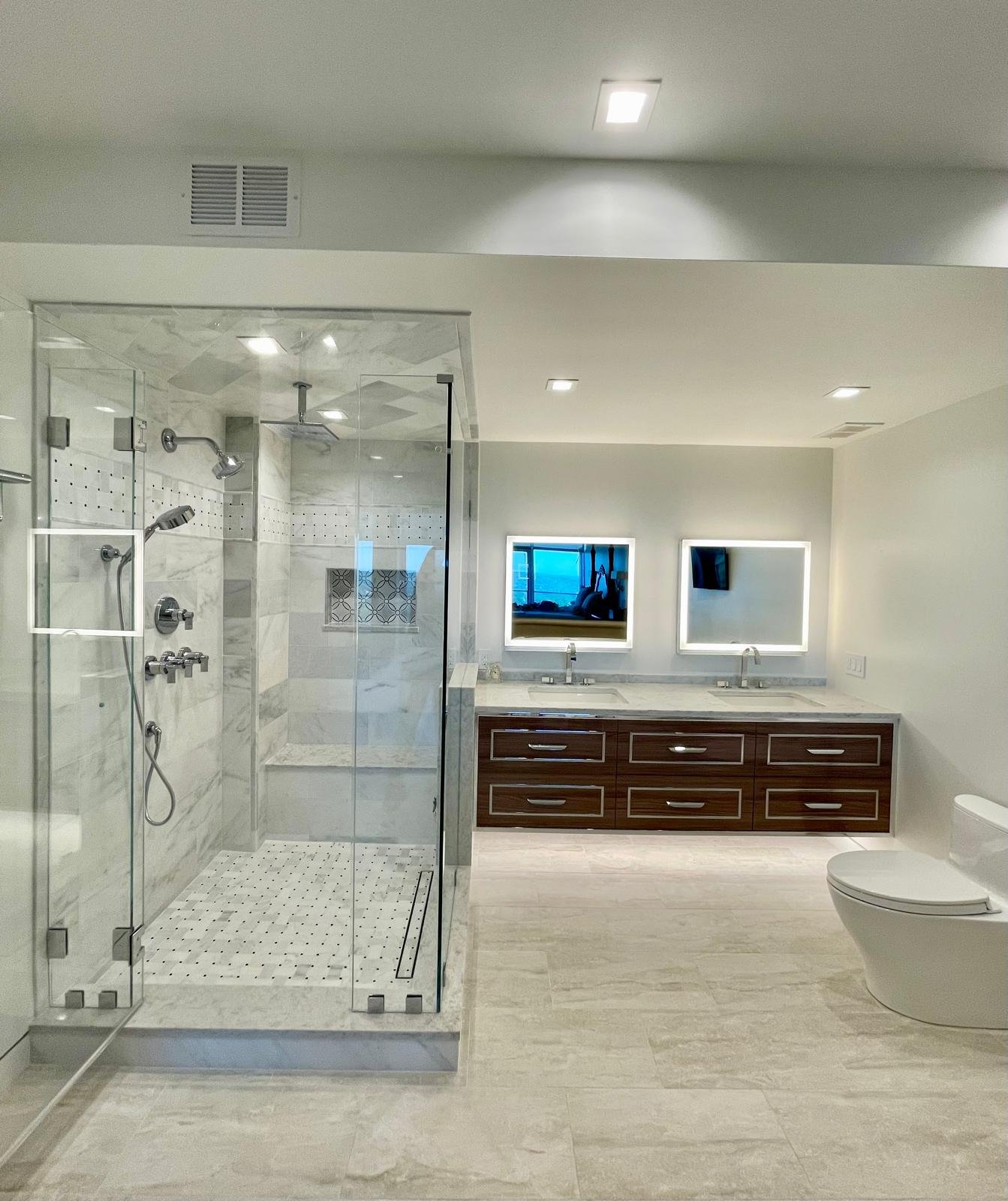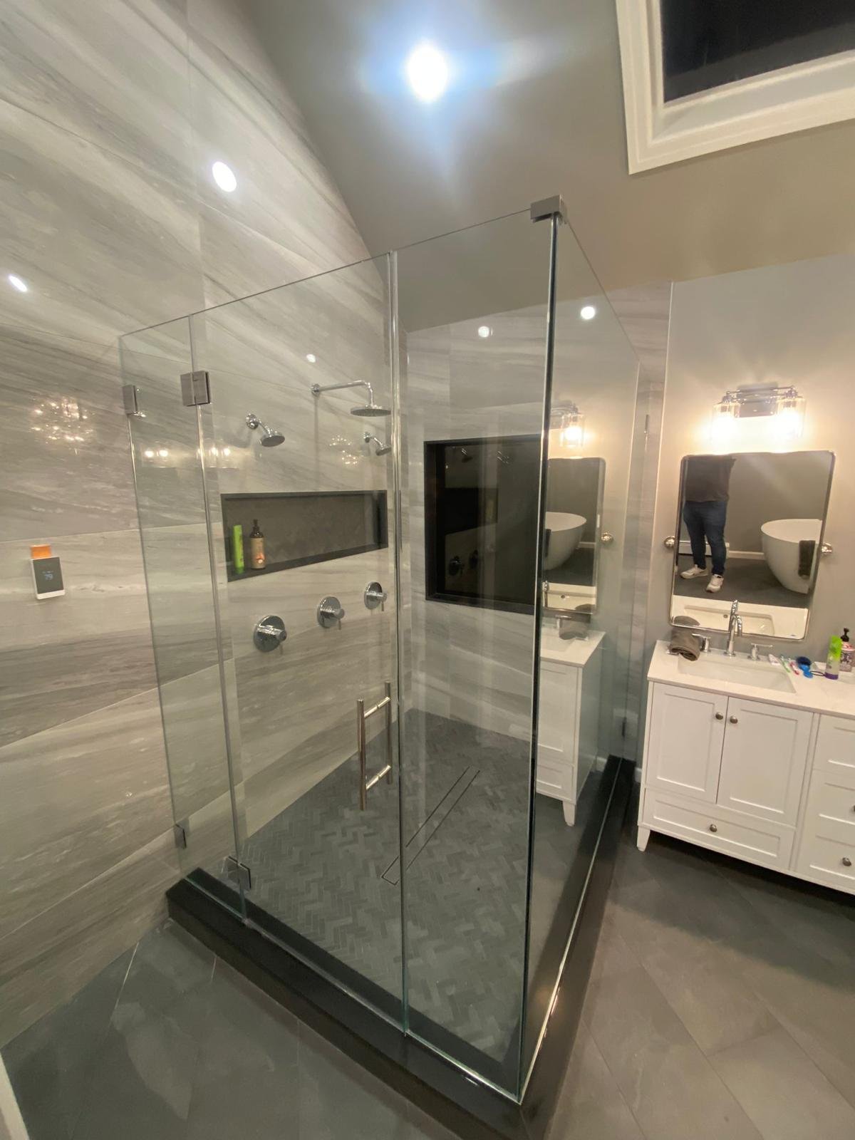 Complete renovation from demo to finishing touch. We handle every detail — layout planning, tile, plumbing, glass doors, lighting, and final inspection.